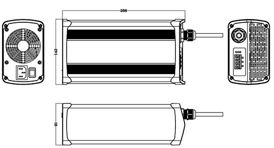 Output Voltage: | 12V~90V | Dimensions (mm): | (L)266х(W)142х(H)91 | |