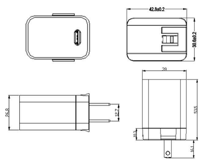 90 - 264V 47 - 63HZ | C1902XZ | 5V3A 9V2.22A 12V1.67A | PD | Single type-c port | VI | ||